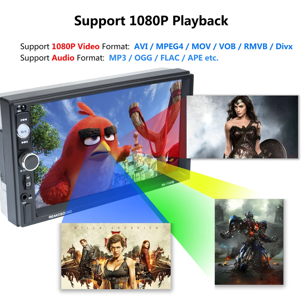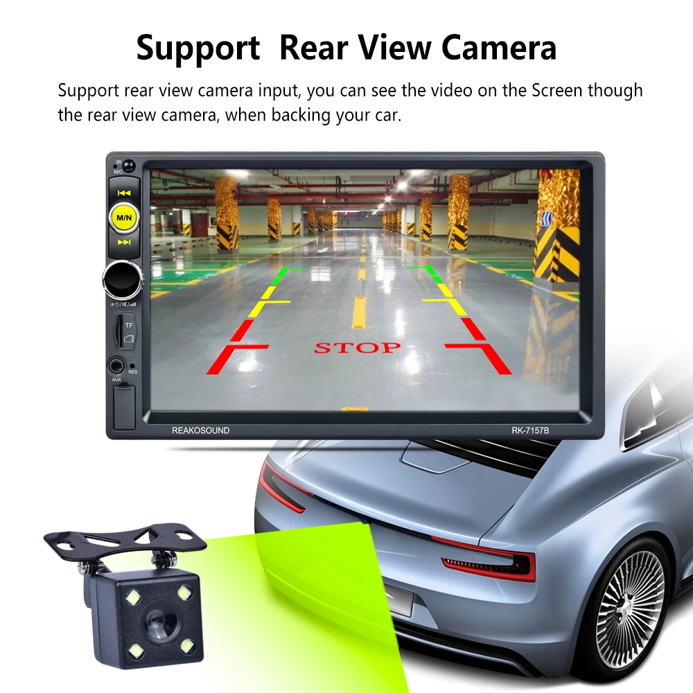 Podofo 2Din Автомагнитола 7 ''TF/USB D-Play Автомобильный мультимедийный плеер с FM микрофоном 7 огней для универсальной Nissan Toyota Hyundai Polo Поддержка камеры заднего вида