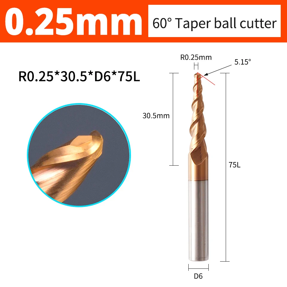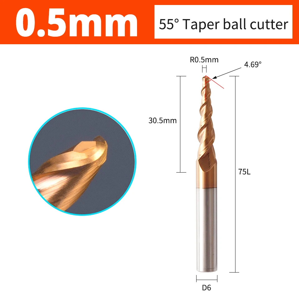 Auxt HEC55 коническая Концевая фреза с шариком карбида древесины Гравировальный Бит фрезерный фреза R0.25/R0.5/R0.75/R1.0/R2