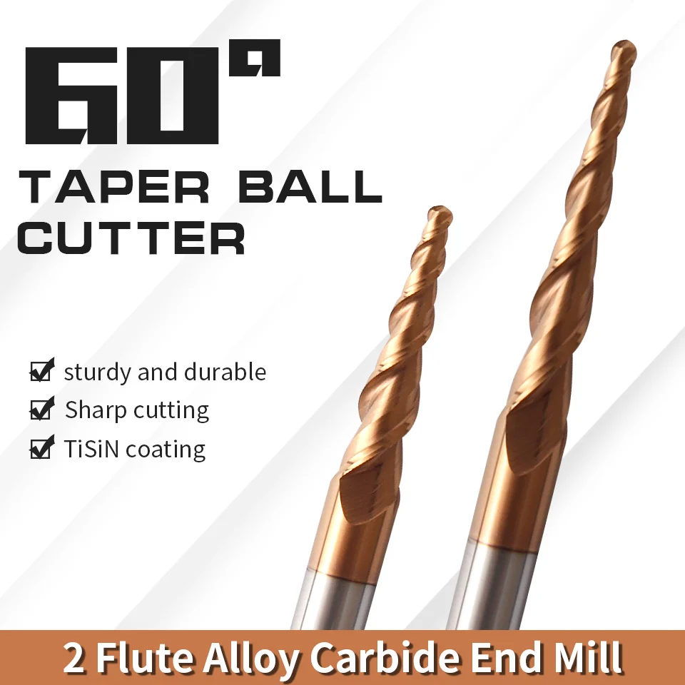 Концевая фреза с коническим шариком AUGT HEC60, карбидный вольфрам, для гравировки дерева, фреза с ЧПУ R0.25R0.5R0.75R1.0R2.0