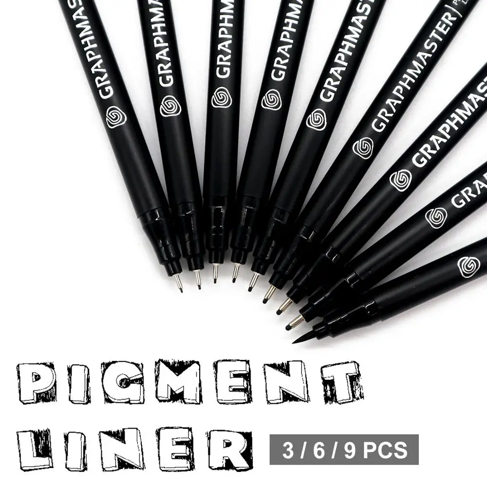 369 шт. Рисунок пером, файнлайнер, ультра тонкая грань художественный маркер с черными чернилами микрон чертежная ручка офисные школьные принадлежности, блокноты