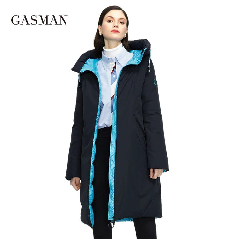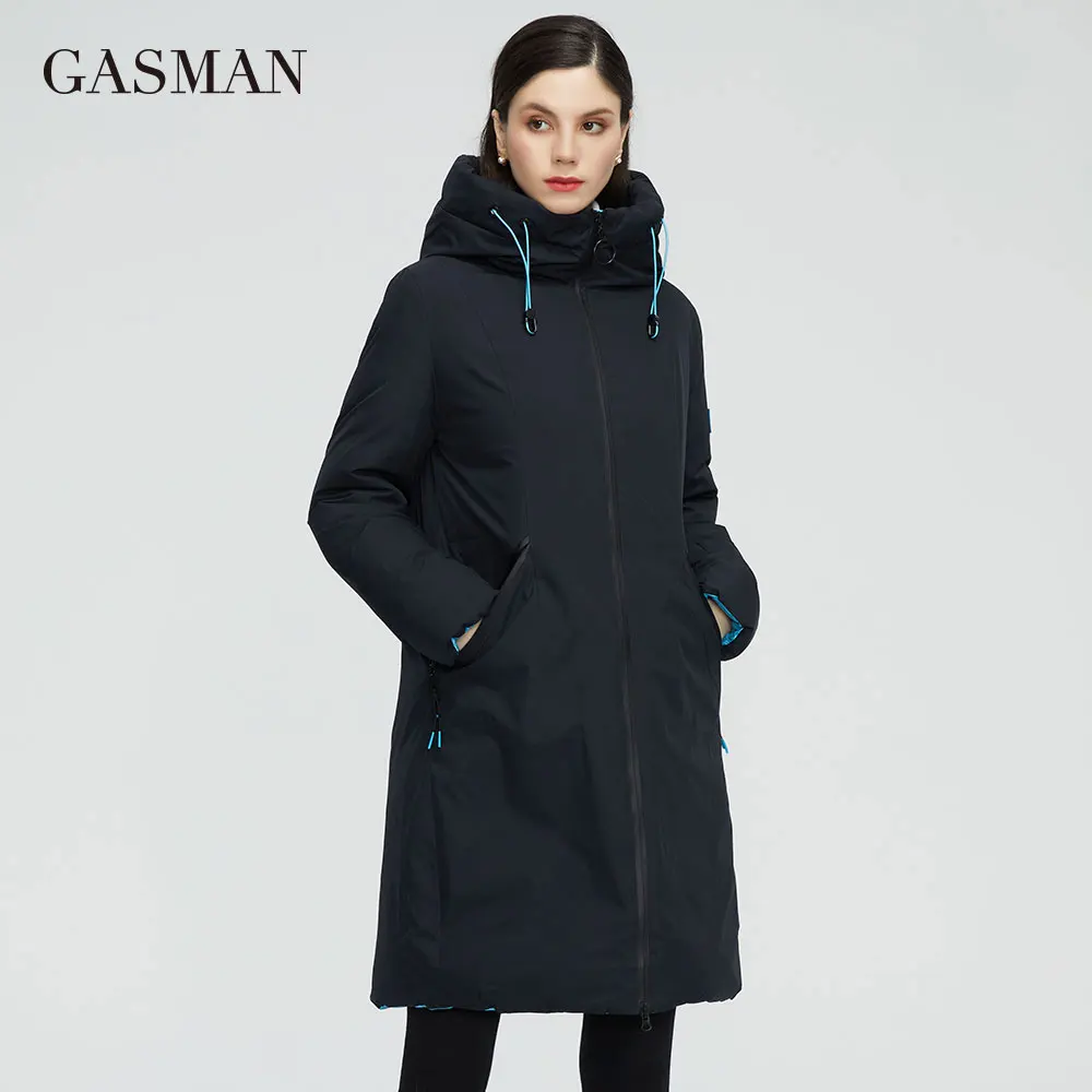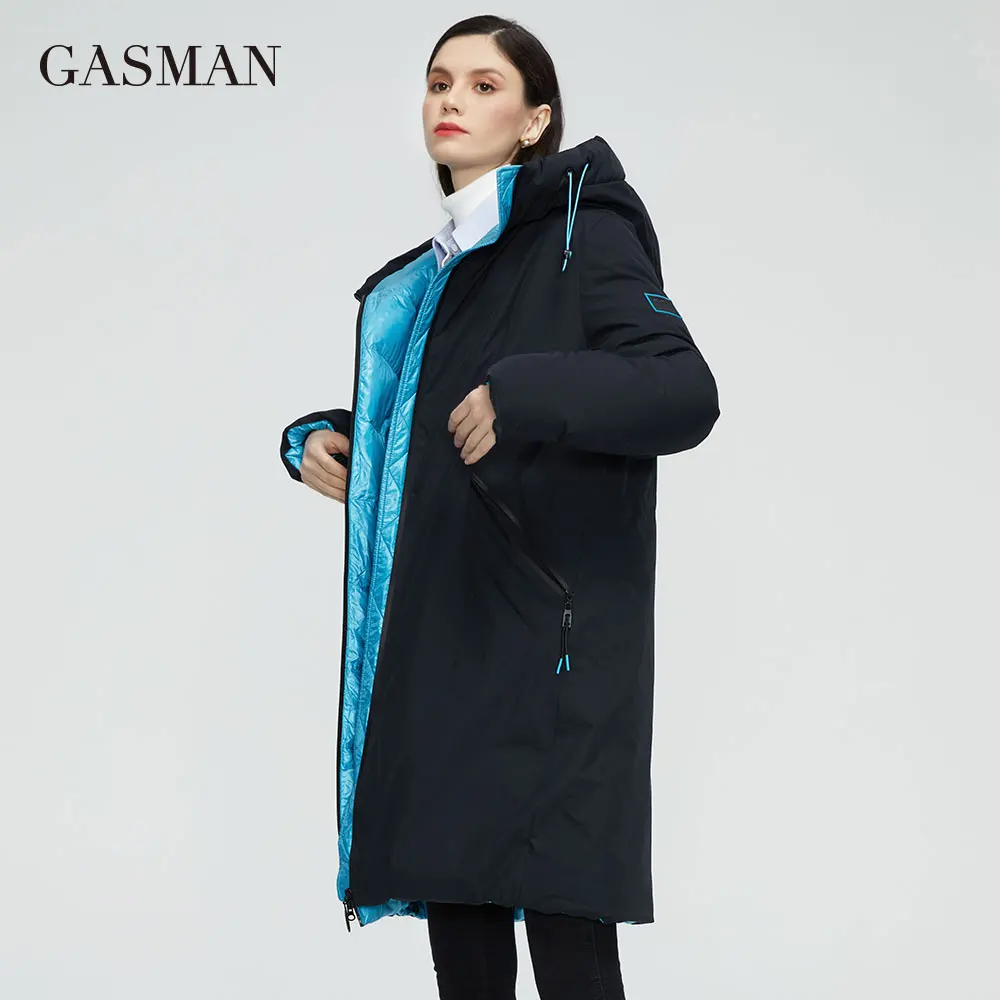 GASMAN Новинка 2021 женские зимние куртки черная высококачественная повседневная теплая пуховая куртка с капюшоном длинная толстая верхняя одежда парка пальто для женщин 210