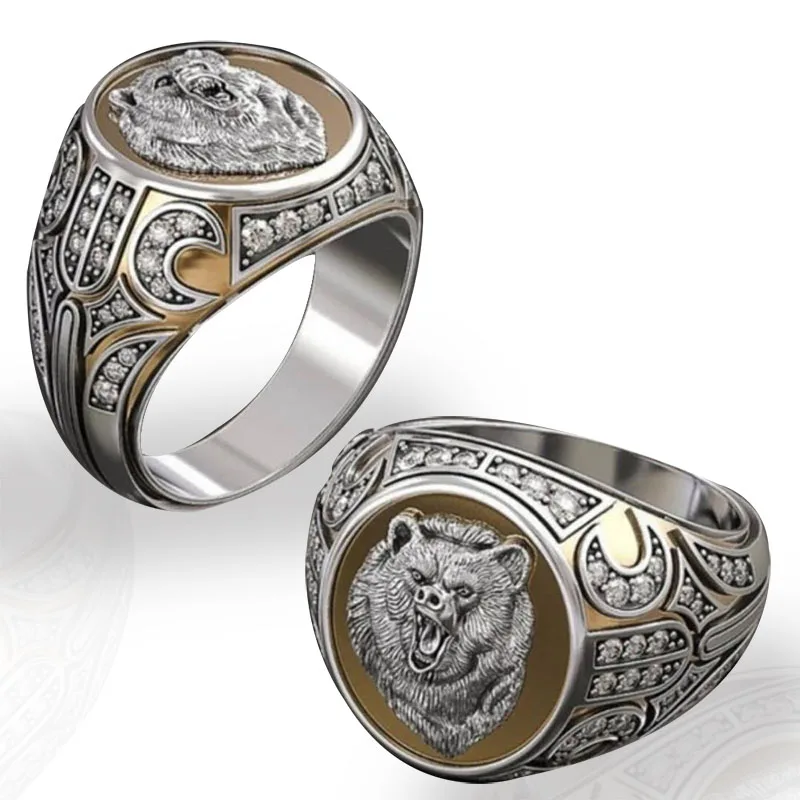 FDLK Викинг панк крутое кольцо с медведем, мужское, винтажное, сере...