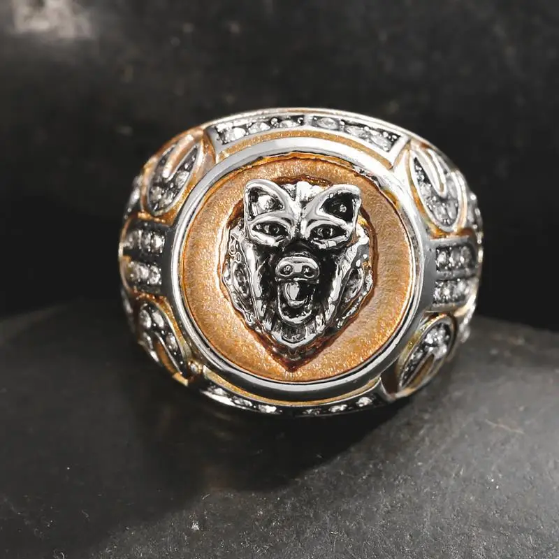 Ofertas 2020 Мода свирепый волк с рисунком головы медведя животных помощи мужское кольцо для вечеринки в честь помолвки легированное искусственное ювелирное изделие, мужские аксессуары размеры для детей в возрасте от 7 до 12 лет