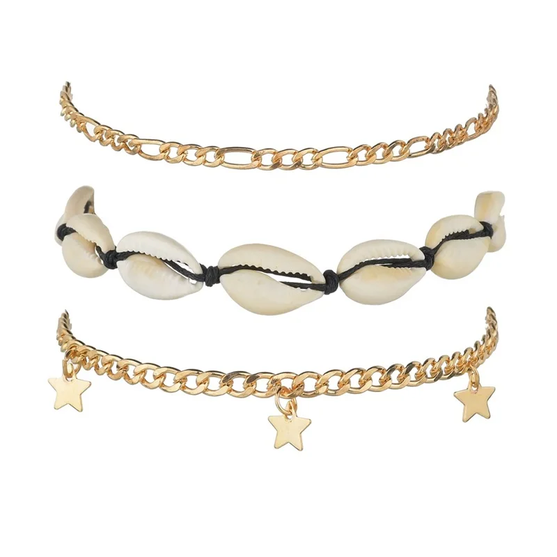 Новый ножной браслет, ювелирные изделия, Популярные пляжные Многослойные ножные браслеты из натурального камня, пятиконечные ножные браслеты для женщин, оптом