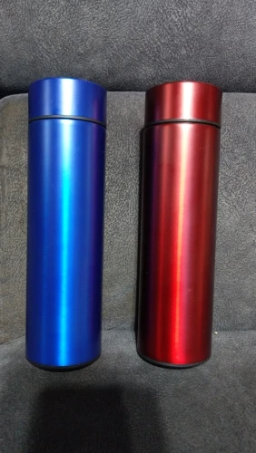 Хороший термос, прибыл без повреждений, договорился с продавцом о надписи на термосе, все сделал как просил. Сам термос не протикает, тепло или холод держит в течение дня. Есть индикатор температуры воды. Заказывал красный и синий, есть конструктивные различия между ними, не критично. Температура между ними всегда отличается на 2 градуса, хотя вода залитая в них одинаковой температуры. Можно брать, хороший товар.