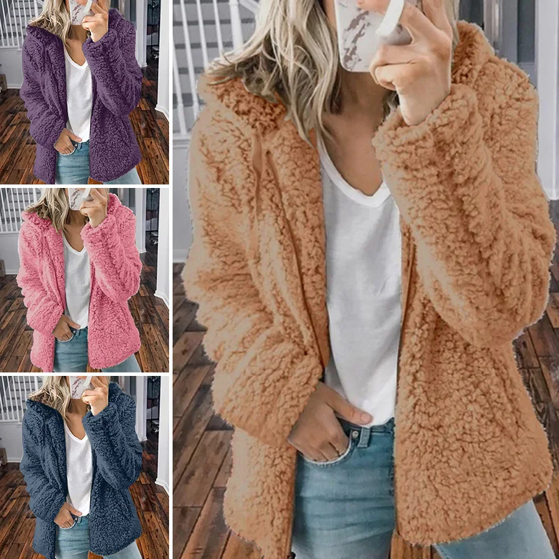 Женская Толстая куртка из искусственного меха, теплая мягкая Свободная куртка на осень и зиму, женская верхняя одежда, плюшевая Повседневная Верхняя одежда