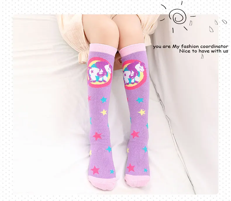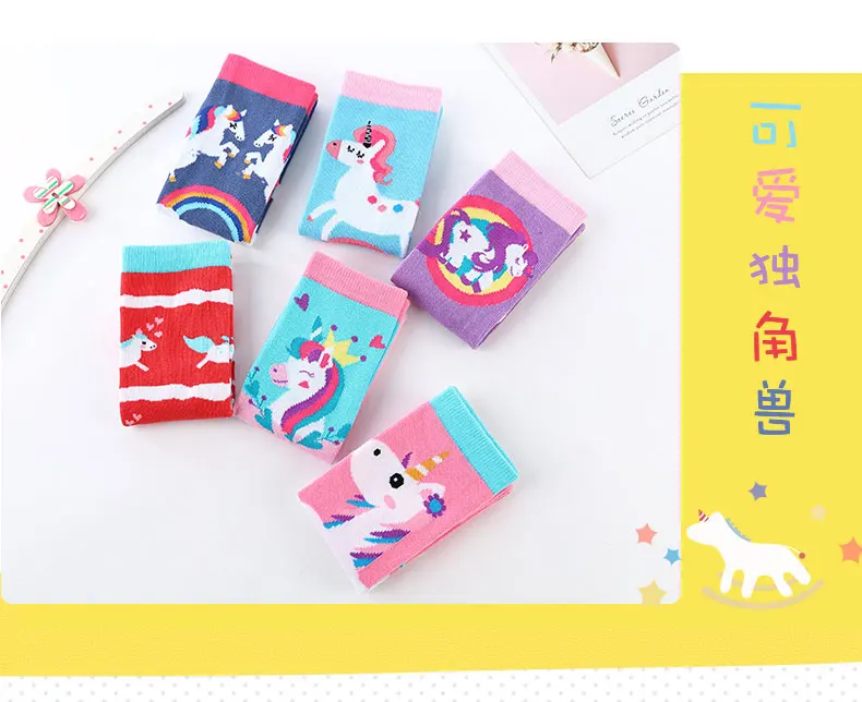 Детские теплые гольфы до щиколотки для девочек, милые Мультяшные гольфы для девочек с единорогом, Длинные цветные гольфы для малышей
