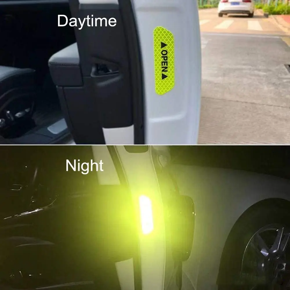 4 шт. Компл. Наклейки на дверь автомобиля универсальный предупреждающий знак безопасности открытый высоко светоотражающая лента авто внешний мотоцикл наклейка на велосипедный шлем