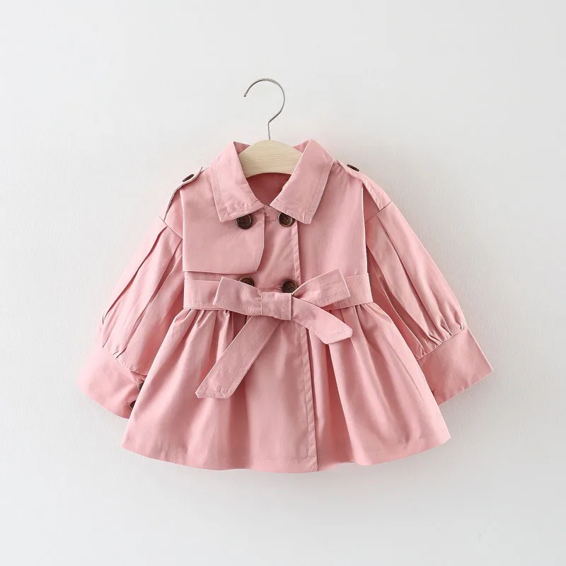Розовое весенне-осеннее пальто для девочек, хлопковый детский Тренч...
