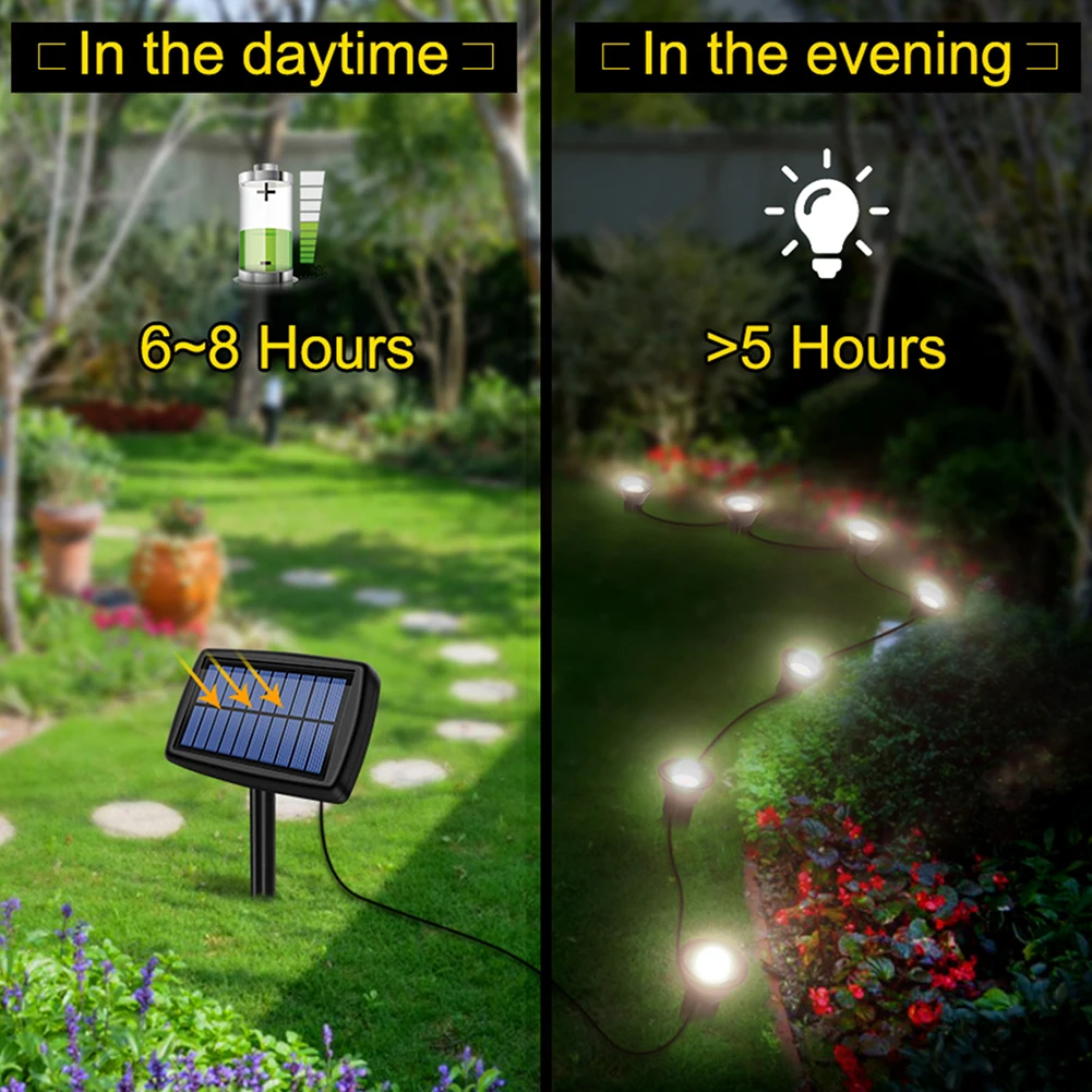 * 1. Солнечный наземный светильник. Каждая гирлянда садовых ламп состоит из 2or1 0 светодиодный лампы и встроенной батареи 500 мАч, зарядка в течение 6-8 часов может светильник в течение 8-10 часов. (Зарядка и рабочее время солнечного садового освещения будут зависеть от погоды)