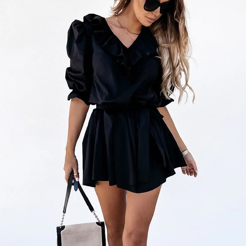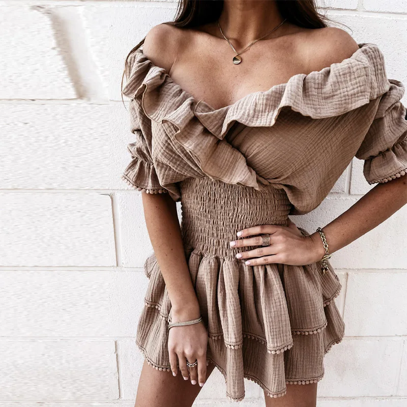 Летнее женское сексуальное мини-платье с открытыми плечами, с оборками, с пышными рукавами и эластичной талией, коктейльное вечернее платье
