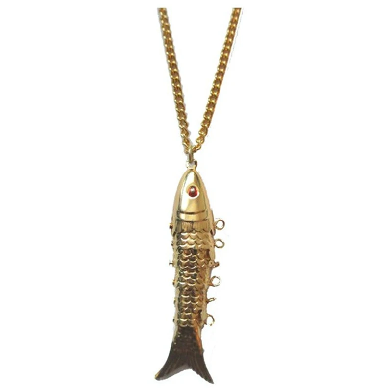 Классическое металлическое золотое ожерелье с подвеской в виде рыбы для женщин и мужчин, байкерские украшения, аксессуары, массивное ожерелье