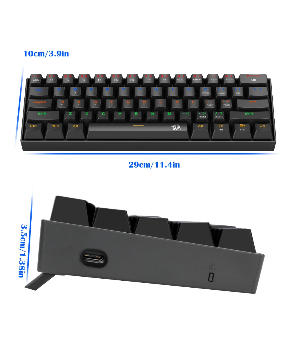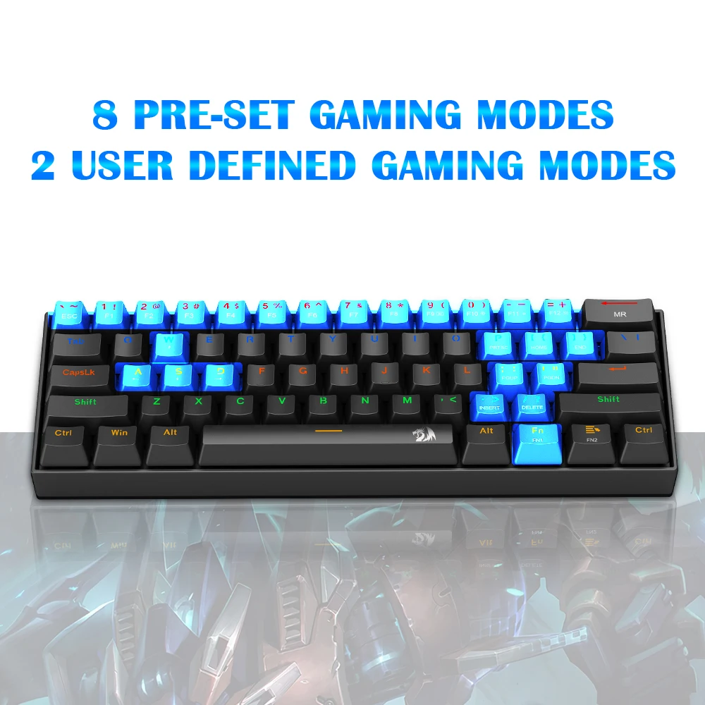 Игровая клавиатура Redragon Lakshmi K606, механическая Проводная клавиатура с радужным USB-разъемом, синие и красные переключатели, 61 клавиша, для ПК, русских и американских игр