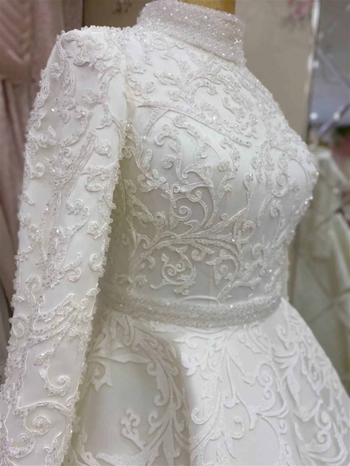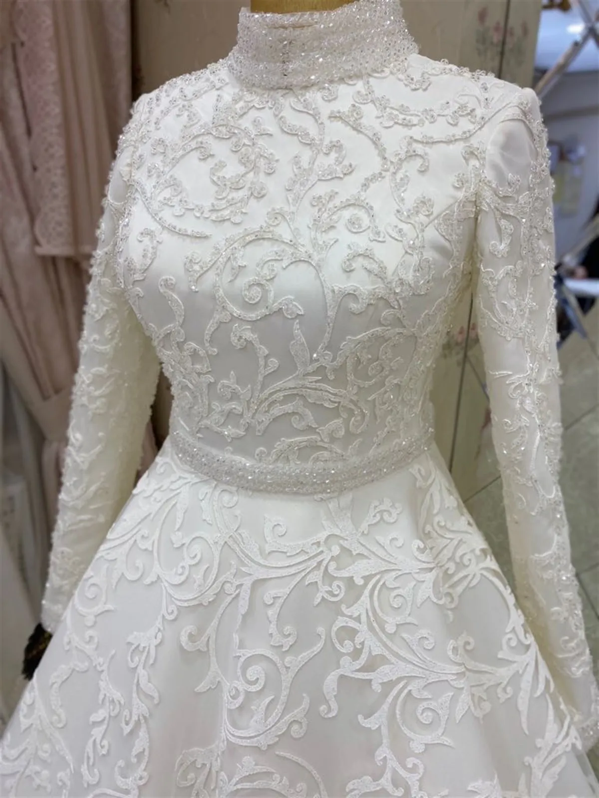 Роскошное Свадебное платье с аппликацией и бисером, с длинным рукавом, для невесты, 2021, свадебное платье с высоким воротом, свадебное платье