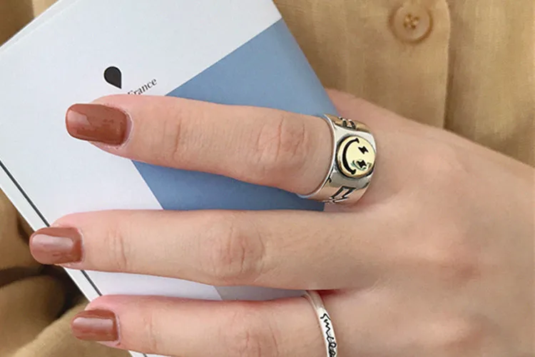 Кольцо в стиле ретро со смайликом INS, Женское кольцо с улыбкой, ст...