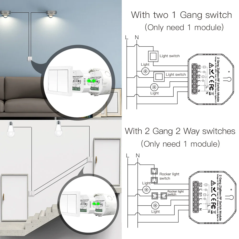 ZigBee + RF433 умный светильник Модуль автоматического включения света 2Gang