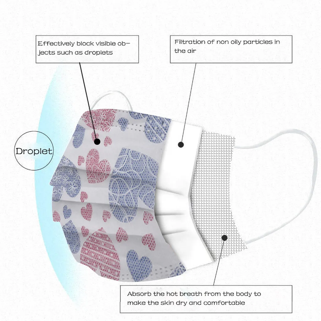 Описание: 3 слоя Нетканая одноразовая маска изготовлена из 3 слоев нетканого материала, он безопасен для здоровья и безопасный для вас, чтобы использовать. Дышащий материал и милые узоры, что делает его полезным и модным. Специальный 3 слоя из нетканого материала, дизайн, обеспечивает некоторые меры защиты от пыли, автомобильный отходящий газ, пыльцу и т. Д. Эластичная петля уха позволяет легко снимать и надевать цепочку и не давит на уши. Маникюрный салон или любые другие области, где может потребоваться защита Особенности: 1. Изготовлен из экологически чистого материала, влагостойкий, нетоксичный, не раздражающий, мягкий и удобный. 2. Дышащий материал и милые узоры, что делает его полезным и модным. 3. Специальный 3-слойный нетканый дизайн, обеспечивает защиту от пыли, автомобильных выхлопных газов, пыльцы и т. д. 4. Идеальный дизайн, когда вы носите его, он легко помещается в лицо. Эластичная Ушная петля легко носить и не давит на уши. 5. Маникюрный салон или любые другие области, где может потребоваться защита Посылка включает в себя: 50 шт. маски