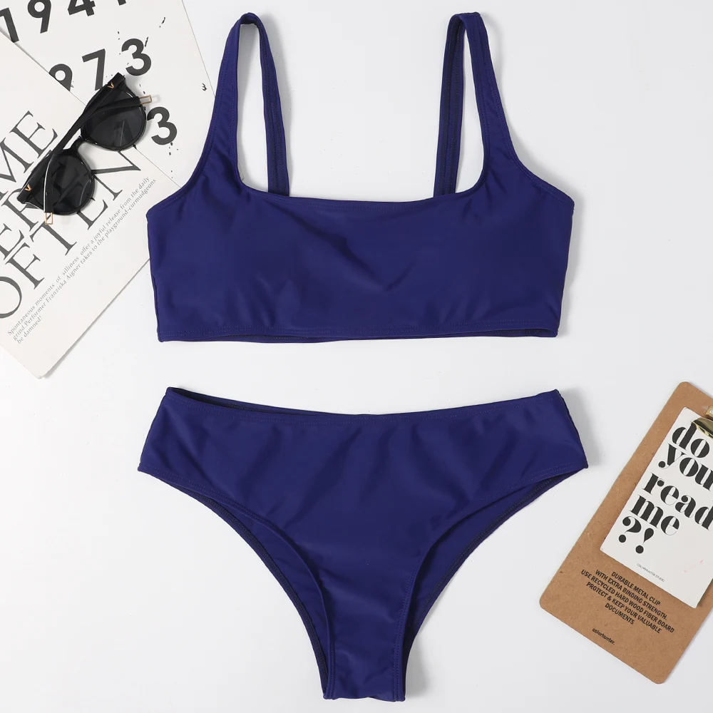 Женский однотонный купальник-бикини, комплект бикини с чашками пуш-ап, 12 цветов, пляжный купальник