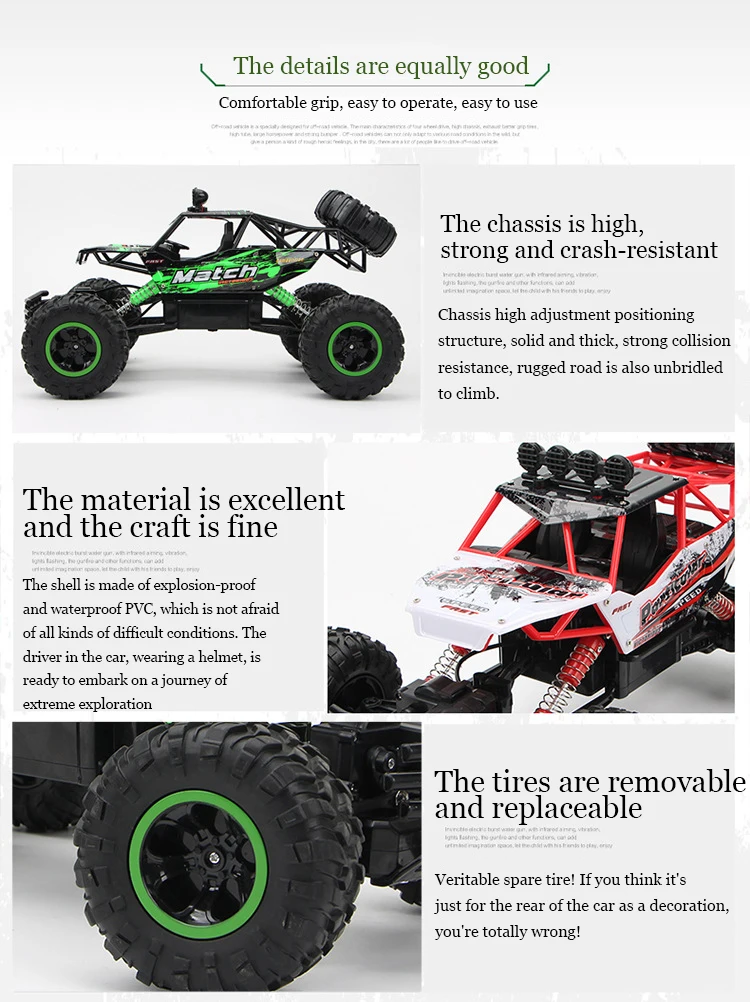 Примечание:1. Коробка из пенопласта используется для розничной упаковки, что может уменьшить повреждение продукции во время транспортировки. Если у вас есть какие-либо вопросы после получения посылка, пожалуйста, свяжитесь с нами. Спасибо за понимание.2. Существует 2 варианта транспортного средства:А. Версия 37 см, масштаб 1:12,4WD с светодиодный светильник, диапазон дистанционного управления около 100 мB.28cm версия, масштаб 1:12,4WD с светодиодный светильник, дистанционное управление расстояние около 100 м3. Если вы получили поврежденный продукт. Пожалуйста, свяжитесь с нами. Мы готовы предоставить вам услуги по ремонту или доставке. Спор открыто или оставлять негативные комментарии не решит проблему. Мы должны общаться. Большое спасибо.Особенности:Новейший и лучший 1:12 полноразмерный грузовик-монстр R/C.2,4 ГГц радио технологии, широкий диапазон управления до 100 м.Противоударная система подвески, лучшая защита грузовика.Оснащен резиновым Колесом высокого качества, не скользит, идеальный опыт.Область применения: земля, трава, песокОписание:100% новый, высокое качество.Размер грузовика: 37x23x20 смВремя работы: около 30 минутВремя зарядки: 2 ~ 3 часаДиапазон управления: 100 метровАвтомобильные аккумуляторы включаютПульт дистанционного управления: 2 * AA батареи (не входят в комплект)Упаковочный лист:1 x Rc автомобиль1 * передатчик1 * Аккумулятор1 * зарядный кабельЕсли вы получили поврежденный продукт. Пожалуйста, свяжитесь с нами. Мы готовы предоставить вам услуги по ремонту или доставке. Спор открыто или оставлять негативные комментарии не решит проблему. Мы должны общаться. Большое спасибо.Размер упаковки продукта:37 см посылка размер 40 расстегиваемый ремешок шириной 22 или 26 вес 1,8 кг28 см посылка Размер 32 20 16 вес 0,9 кг