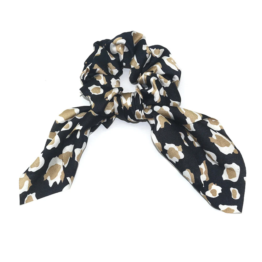 Лидер продаж, Винтажные эластичные резинки для волос с леопардовыми кроличьими ушками, заколки для волос с бантом, аксессуары для волос для конского хвоста, резинки для волос
