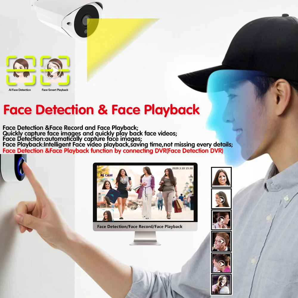 Функция распознавания лиц и воспроизведения лица при подключении AHD DVR(AHD DVR должна быть функция распознавания лиц)!