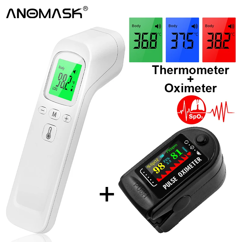 Медицинский Детский термометр, инфракрасный цифровой измеритель + Пальчиковый оксиметр, цифровой Пульсоксиметр на кончик пальца для насыщения крови кислородом