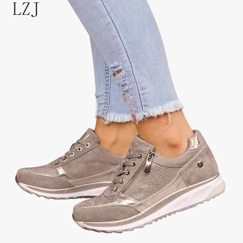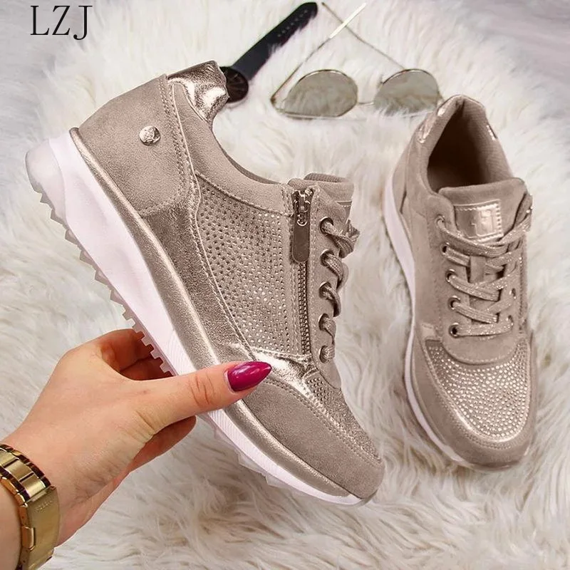 Женские кроссовки на толстой подошве, кожаные, на молнии, на платформе, эластичные, для бега