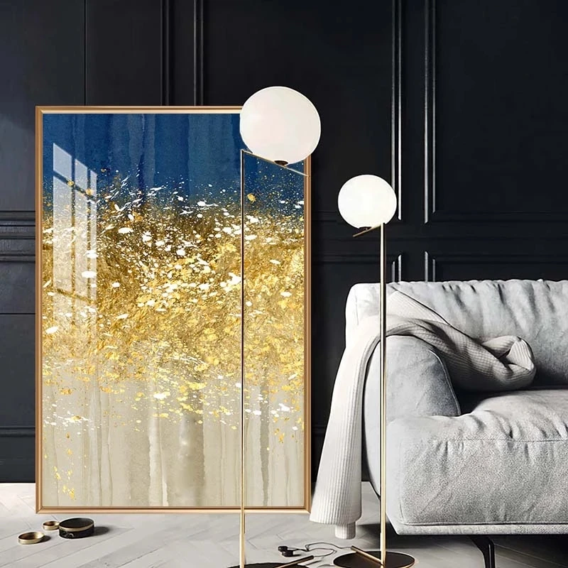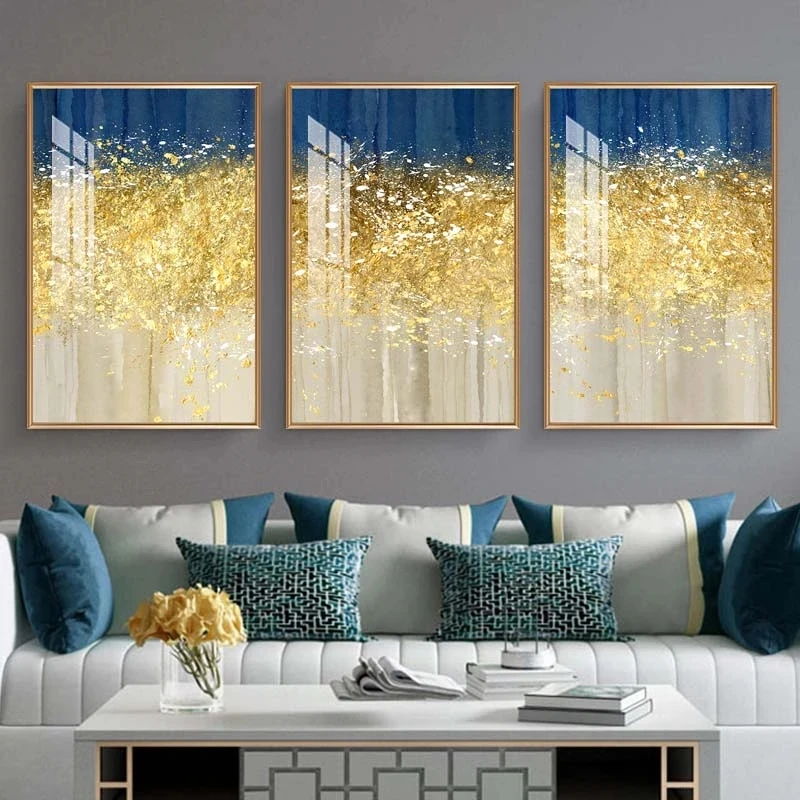 Абстрактный золотой фольги Холст Картина синий стиль постер и печат...