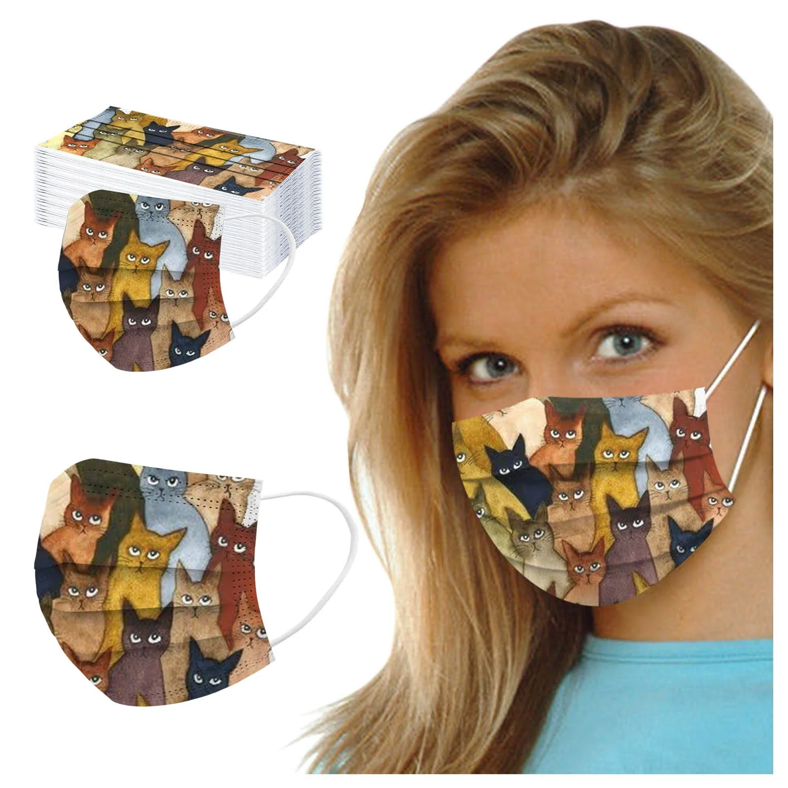 Защитная маска для лица, одноразовые гигиенические маски, 50 шт., маска для лица для мужчин и женщин с принтом кошки, 3-слойная маска с петлями для ушей, маска Anti-PM2.5