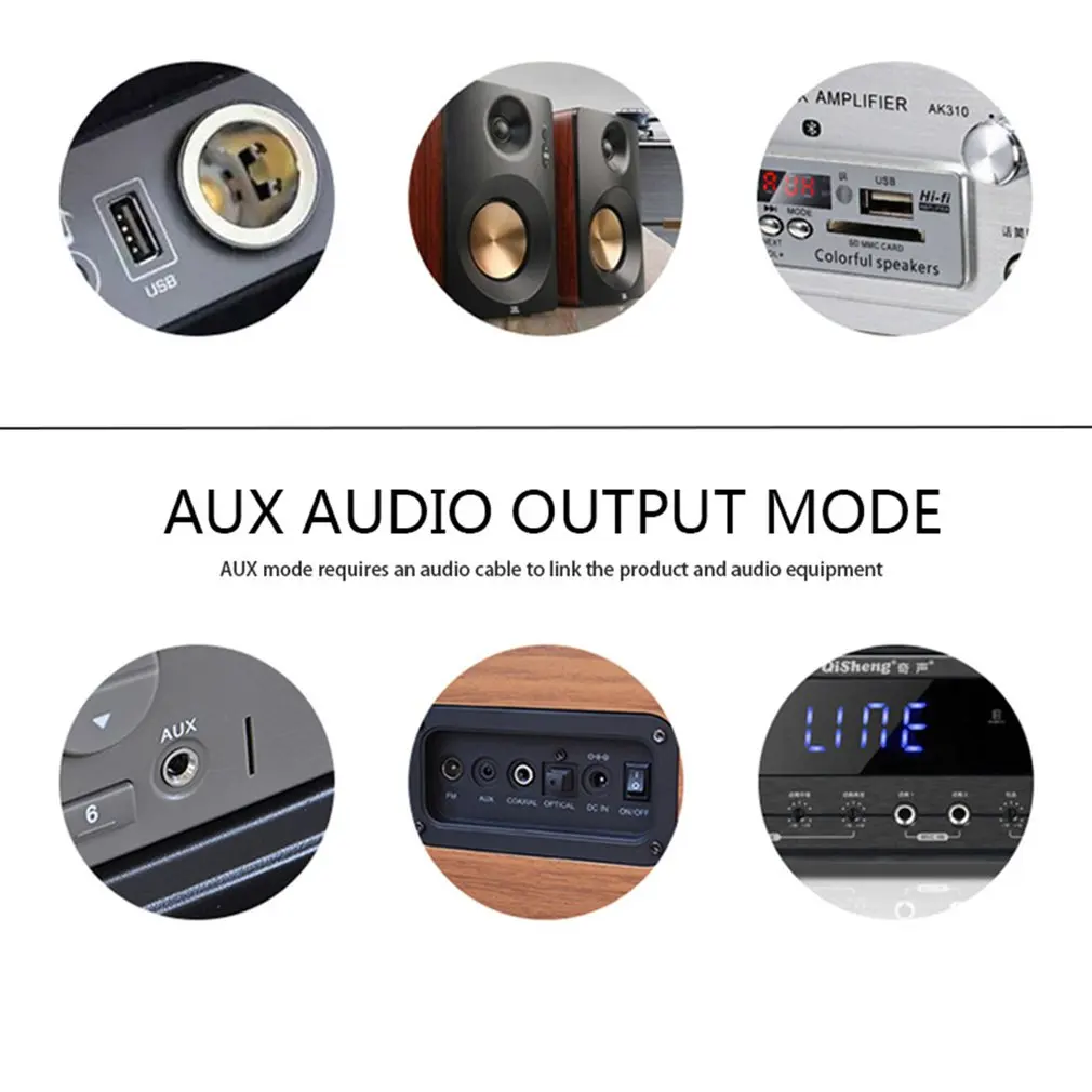Беспроводной аудиоприемник поддерживает метод воспроизведения USB, метод воспроизведения AUX и может быть подключен к автомобилю для использования звонков без рук.