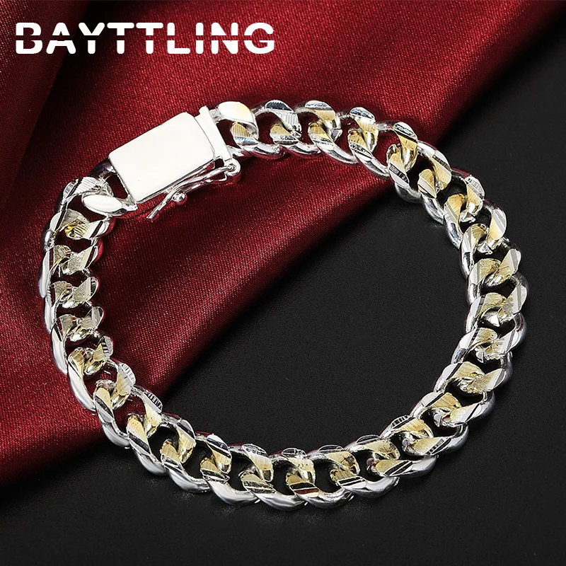 Браслет-цепочка BAYTTLING серебристого цвета 8 дюймов с золотой стороной, 10 мм, браслет для мужчин и женщин, модные свадебные ювелирные изделия, подарки