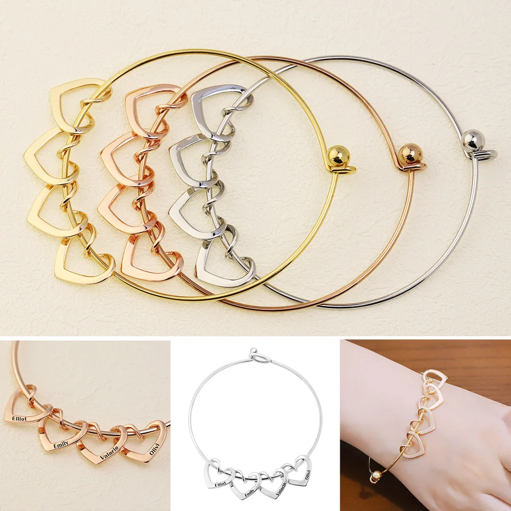 Браслет Duoying с именем под заказ, браслет с персонализированным сердцем, браслет из нержавеющей стали с именем сердца, браслет с гравировкой под заказ, Прямая поставка