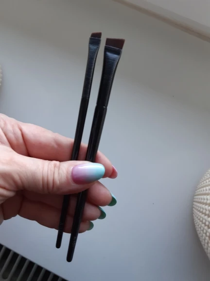 Кисти отличные. Тонкие, рисуют тонкие и чёткие линии. Маленькой кистью рисую брови, а той, что побольше, корректирую форму тоном. Из-за объединения нескольких заказов в одну посылку получила быстро. Заказала 4 мая, а получила 13 мая