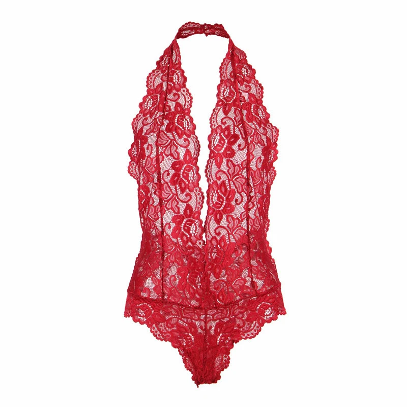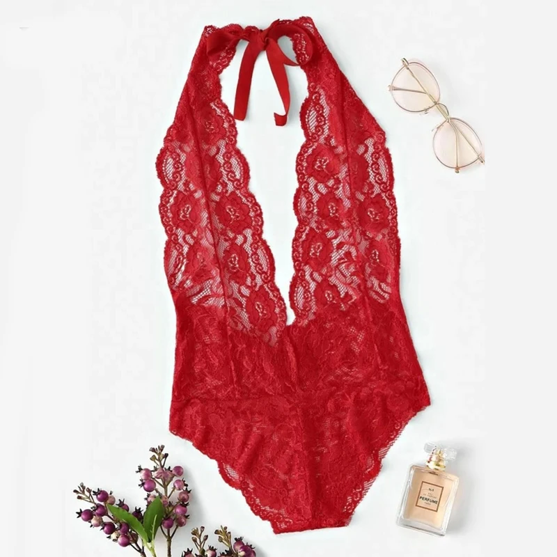Женское Сексуальное Кружевное боди чулки с глубоким V-образным вырезом