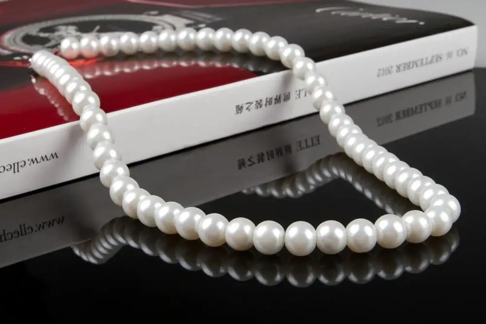 Жемчужные ожерелья для женщин 8 мм цепь с искусственным жемчугом Ко...