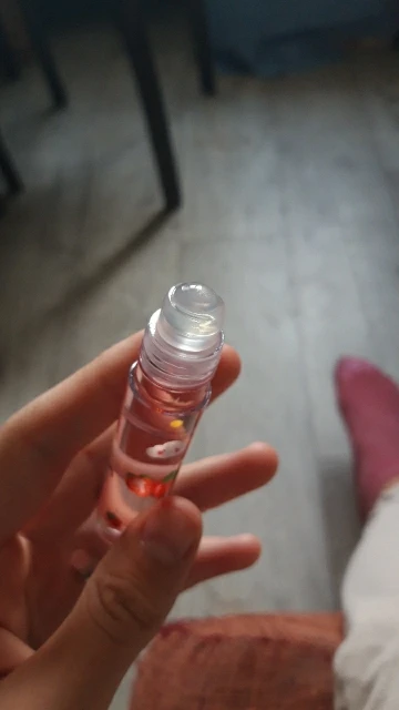 блеск прешёл яблочный пахнет вкусно держется на губах отлично увлажгяет супер но во время пути не много пролилась