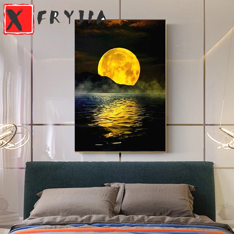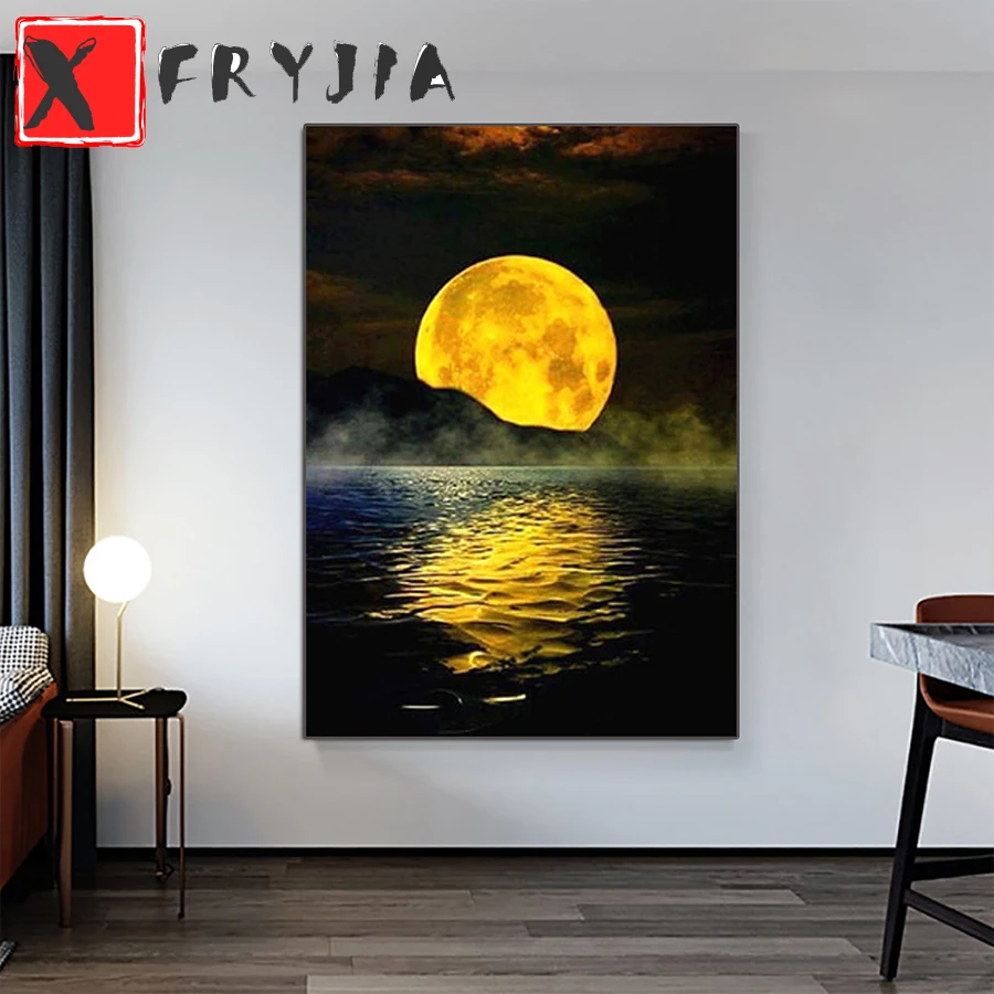 Алмазная вышивка яркая луна на море, полноразмерная круглая вышивка крестиком, мозаика из смолы, офисный Настенный декор