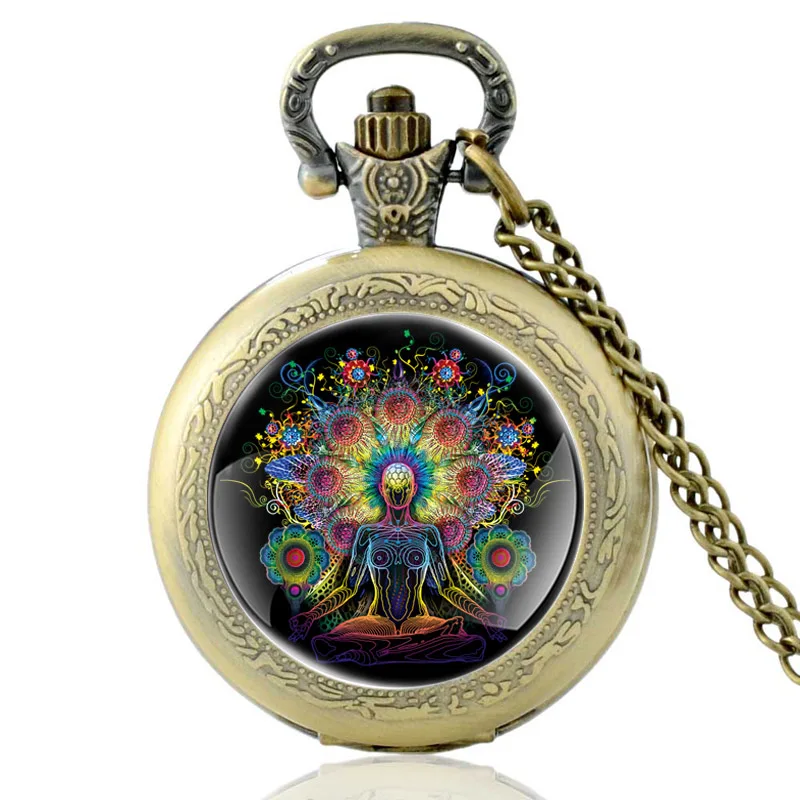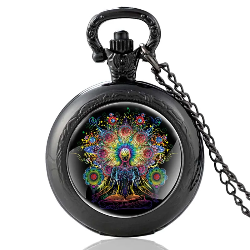 Новое поступление, открытые чакры, дизайнерские черные винтажные кварцевые карманные часы для мужчин и женщин, часы на подарок