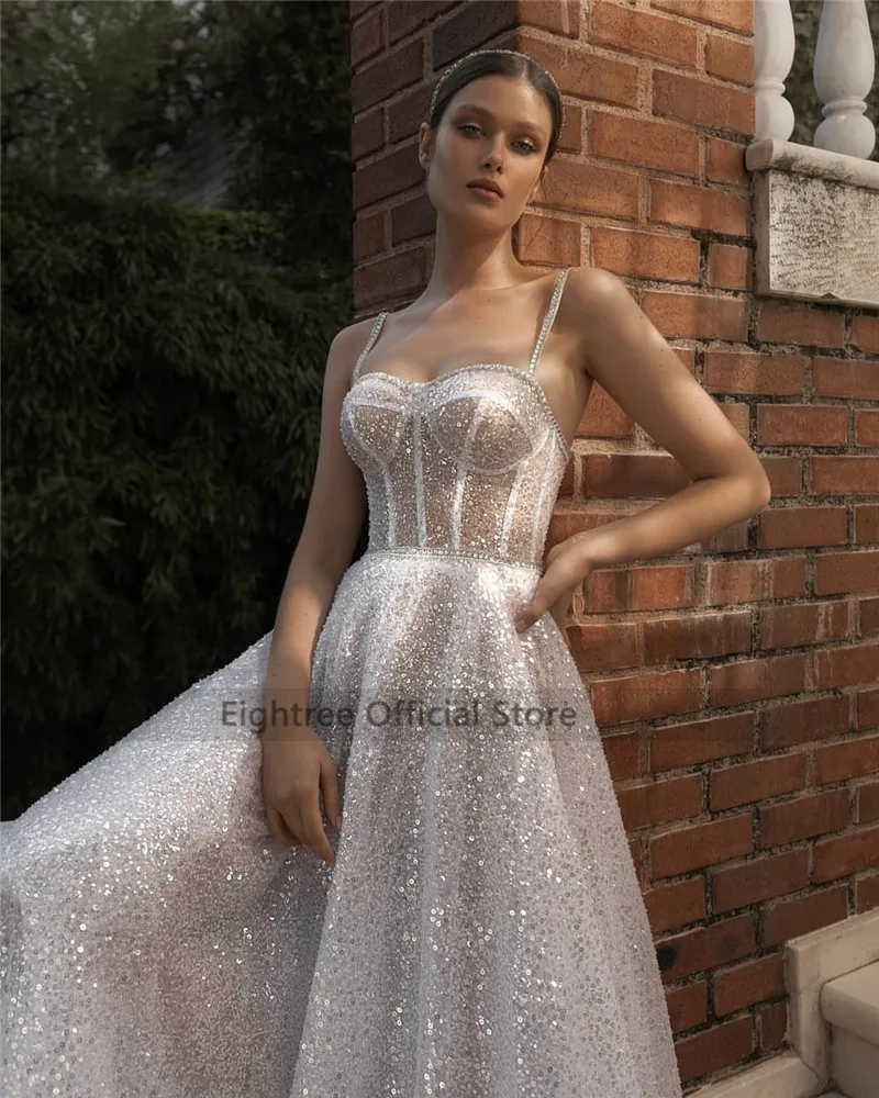 Сексуальное свадебное платье цвета шампанского, с блестками, блестя...