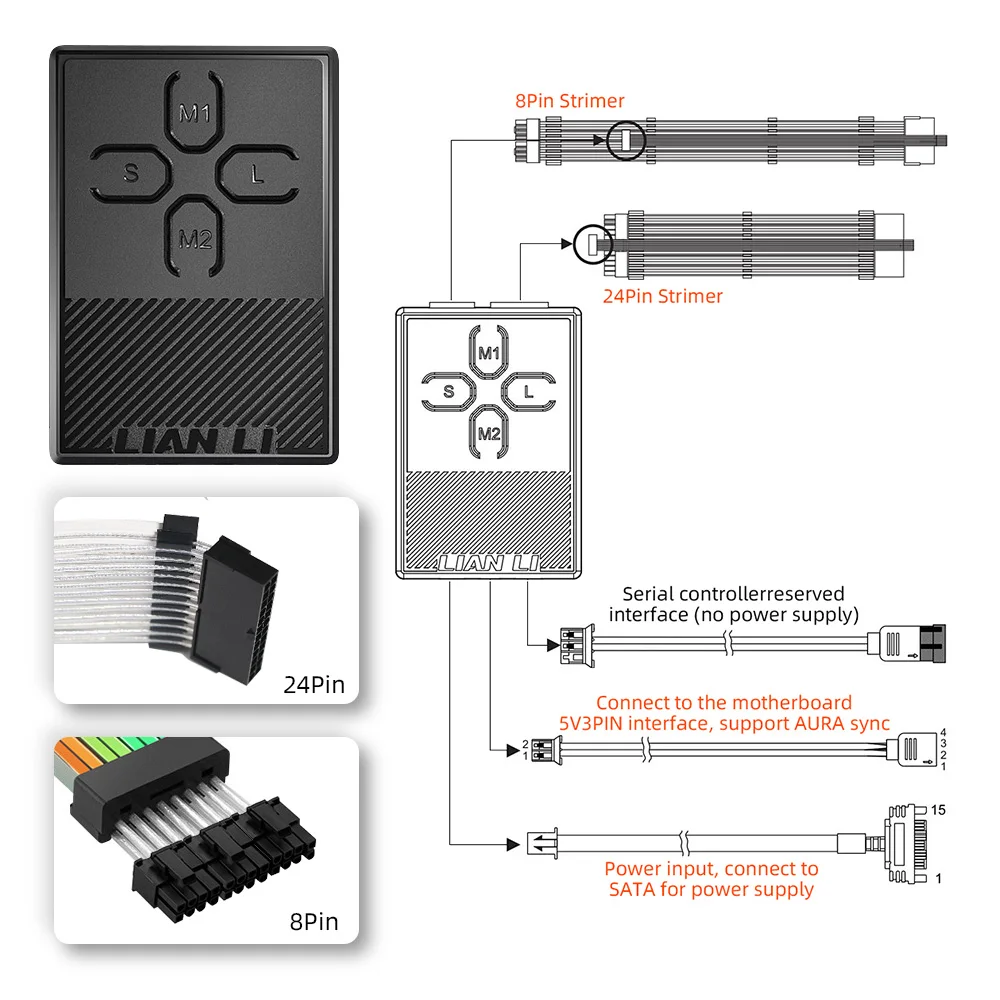 LIAN LI Strimer Plus GPU A-RGB Удлинительный кабель тройной 8PIN удлинитель для материнской платы провод 24PIN MOBO Lianli линия освещения PC MOD 5В
