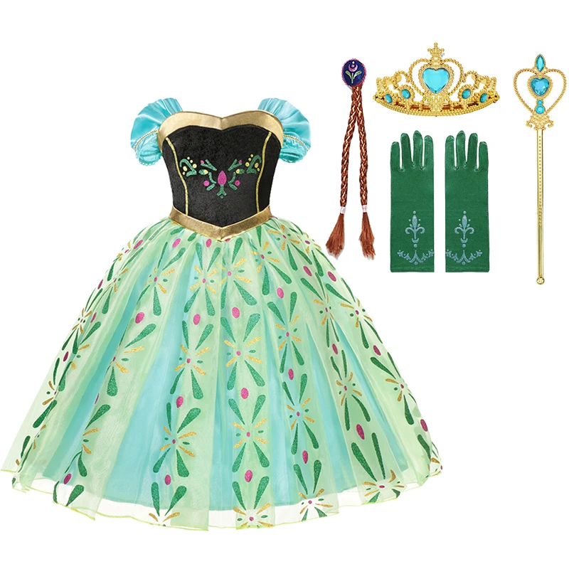 Размер CN: 100-110-120-130-140-150Возраст: От 2 до 3 лет, От 3 до 4 лет, От 4 до 5 лет, От 5 до 6 лет, От 7 до 8 лет, От 9 до 10 летМатериал: полиэстер, сеткаАксессуары: перчатки, палочка, парик, корона, ожерелье, пожалуйста, выберите то, что вам нужноПарик: свободный размер, лучше подходит для девочек 4T и более крупных размеровПринцесса: Анна