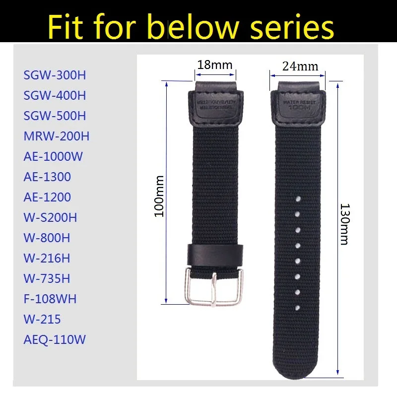 Новое поступление 18 мм черный нейлоновый ремешок для объектива с оптическими зумом Casio AE-1200WH AQ-S810W SGW-400H SGW-300H пряжкой ремешок Часы-браслет на запястье