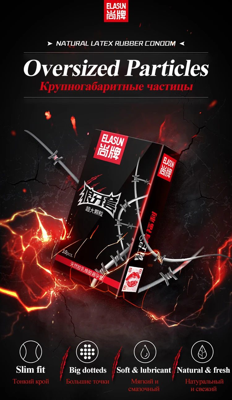 Презерватив ELASUN супер большие частицы удовольствие в горошек дополнительная смазка натуральный латекс точка G рукав для пениса секс-игрушки для мужчин пар