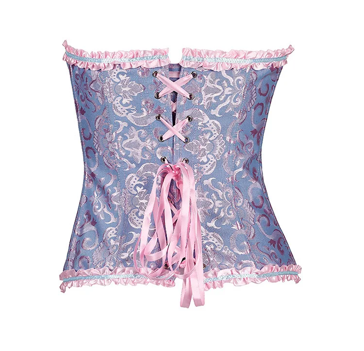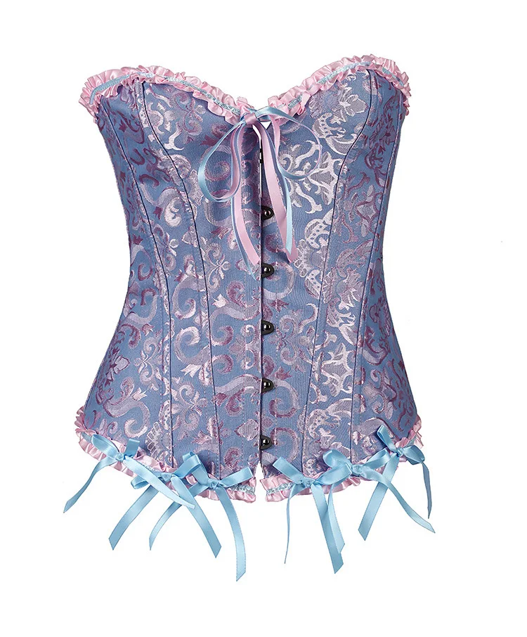 Высококачественный Корсет-Топ синий сексуальный кружевной размера плюс эротический на пуговицах Цветочный Женский корсет-бюстье Cinturilla нижнее белье парча