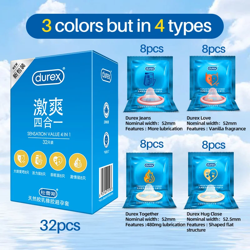 Презервативы Durex, 4 типа, ультратонкие, со смазкой, из натурально...