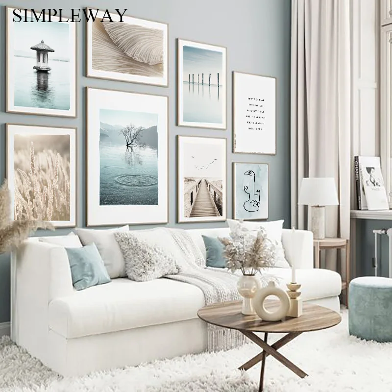 Богемное настенное искусство океан трава природный пейзаж плакат и ...