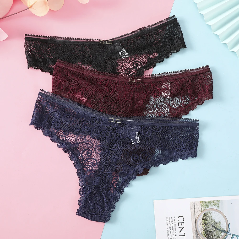 Трусы-стринги женские, пикантные кружевные стринги, бесшовные, 3 шт.