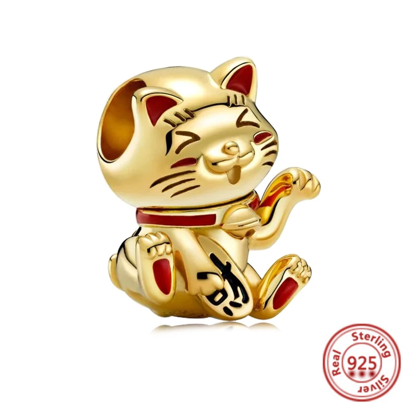 925 Твердые серебряные бусины на удачу с котом, тигром, пиксиу, льв...