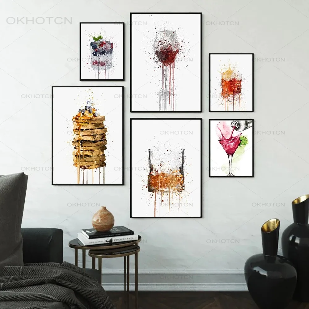 Картина на холсте торт вино коктейль постер брызговик эффект абстрактная еда печать художественное украшение Настенная картина современный декор для гостиной