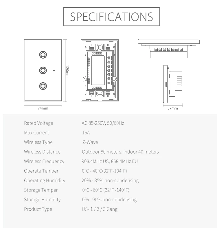 Радиочастота Z-Wave, пожалуйста, сообщите нам, какую радиочастоту вы хотите заказать, другие, мы обычно отправляем нам версию: 908,4 МГц